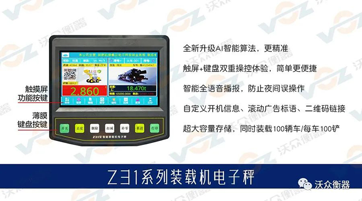 Z31系列裝載機(jī)秤是沃眾衡器新推出的全觸屏、全語音、超大容量的AI智能裝載機(jī)秤,稱重操作更簡單!